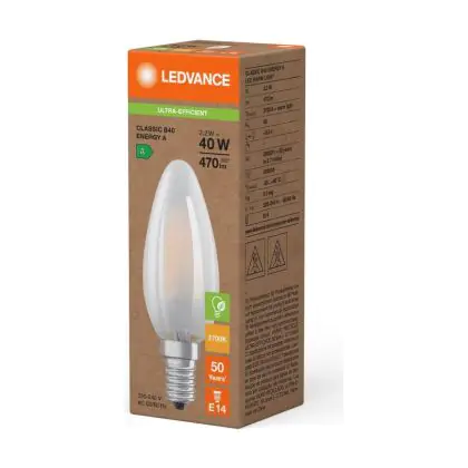 Ledvance LED Classic E14 Kerze Fadenlampe Matt 2.2W 470lm - 827 | Ersatz Für 40W
