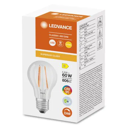 Ledvance Superior Classic LED E27 Birne Fadenlampe Klar 5.8W 806lm - 927 | Dimmbar - Höchste Farbwiedergabe