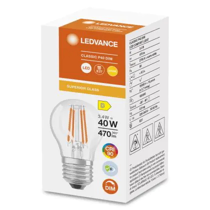 Ledvance Superior Classic LED E27 Kugel Fadenlampe Klar 3.4W 470lm - 927 | Dimmbar - Höchste Farbwiedergabe