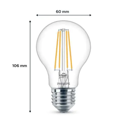 | Herstellername | Box 2 stuks - Philips LED Lamp Transparant - 60 W - E27 - Koelwit licht | |