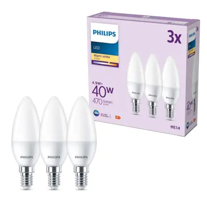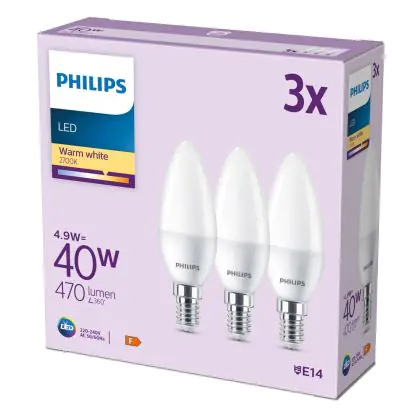 | Herstellername | Box 3 stuks - Philips LED Kaarslamp Mat - 40 W - E14 - Warmwit licht | |
