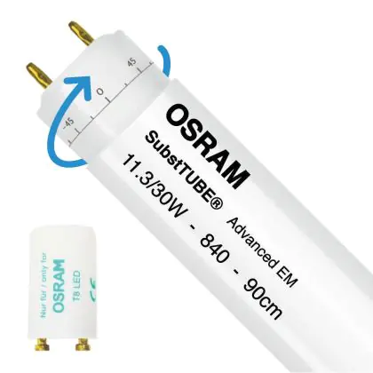 Bei der Osram LED Röhre 90cm | 4000K 11.3W - Advanced handelt es sich um eine energieeffiziente LED-Röhre. Sie ersetzt Ihre konventionelle Leuchtstoffröhre mit 30W. Die Röhre ist 900 mm lang und hat die Farbtemperatur 4000K - Kaltweiss. Die durchschnittliche Lebensdauer der LED-Röhre beläuft sich auf 50000 Stunden. Wir bieten Ihnen für dieses Produkt eine Garantie von 5 Jahre an.
