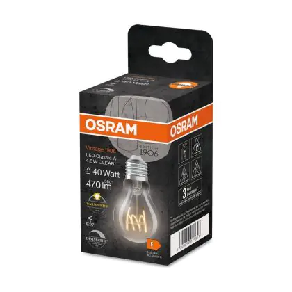| Herstellername | Vintage 1906 LED CLASSIC A,B,P SLIM FILAMENT DIMMABLE 4.8W 827 Clear E | |