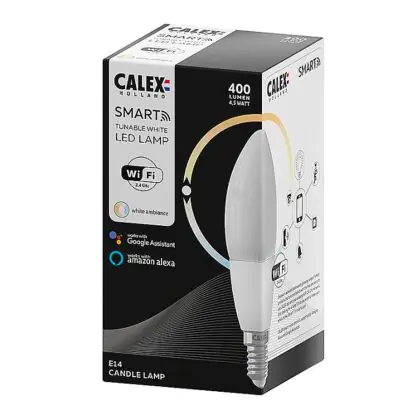 Description Calex Smart Tuya Wifi E14 Bougie Filament 4.5W 400lm - 822-840 Accordable Blanc | Dimmable - Remplacement 40W