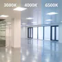 Les dimensions les plus courantes des panneaux LED sont 60x60cm (carrés) et 30x120cm (rectangulaires). Ce sont des tailles standard pour presque tous les plafonds/ des plafonds à grille. D'autres dimensions sont également disponibles, telles que 20x120cm ou 15x150cm.