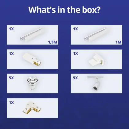 Description Ensemble complet Rail Monophasé Rail L 1 x 1,5 Mètre Blanc | incl. 5x Spot + GU10 2700K 3W Dimmable + Embout, Connecteur d’Alimentation et L -Connecteur