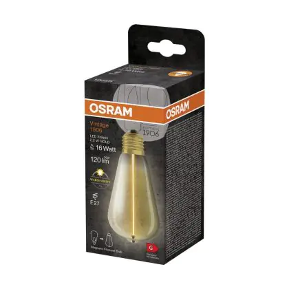 Cette ampoule Osram Vintage 1906 LED E27 Special Filament Claire Edison 2.2W 120lm - 827 | Remplacement 15W est l’alternative idéale pour la remplacement de votre ampoule classique de 15 W. La technologie LED intégrée vous offrira de nombreux avantages. Les ampoules à incandescence traditionnelles ont une durée de vie limitée. Cette alternative LED vous permettra de profiter d’un éclairage durable et fiable.