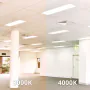 Les dimensions les plus courantes des panneaux LED sont 60x60cm (carrés) et 30x120cm (rectangulaires). Ce sont des tailles standard pour presque tous les plafonds/ des plafonds à grille. D'autres dimensions sont également disponibles, telles que 20x120cm ou 15x150cm.
