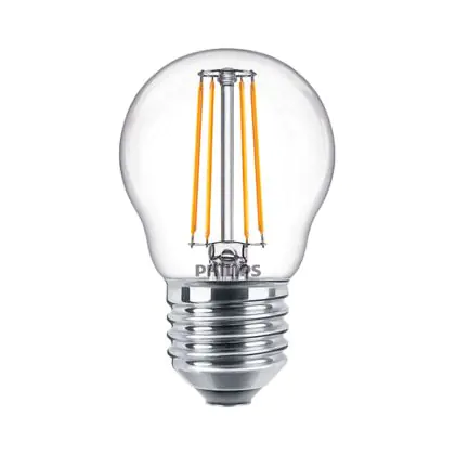 Cette ampoule Philips Corepro LED Lustre E27 Boule Filament Claire 4.3W 470lm - 827 Blanc Très Chaud | Équivalent 40W est l’alternative idéale pour la remplacement de votre ampoule classique de 40 W. La technologie LED intégrée vous offrira de nombreux avantages. Les ampoules à incandescence traditionnelles ont une durée de vie limitée. Cette alternative LED vous permettra de profiter d’un éclairage durable et fiable.