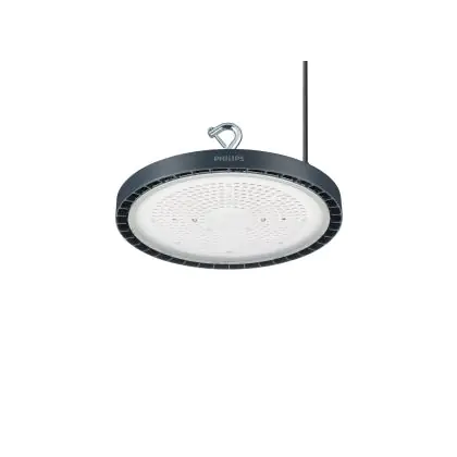 Le Philips Highbay LED BY121P Coreline G5 Aluminium Gris 126W 20000lm 55D - 840 Blanc Froid | IP65 est un puissant luminaire qui est très souvent utilisé pour l’éclairage industriel. Ce luminaire suspendu propage un puissant flux lumineux de 20000 Lm et offrant un excellent rendu de couleurs par rapport aux luminaires traditionnels. Cet high-bay LED est capable de résister aux différentes températures extrêmes que l’on peut retrouver dans les hangars, entrepôts ou autres halls industriels. La technologie LED Intégré sur ce luminaire permet de faire d’importantes économies d’énergie. En effet, l’high-bay propose une puissance de 126W pour un équivalent de W pour les appareils classiques et dispose d’une durée de vie pouvant aller jusqu’à 75000 heures.