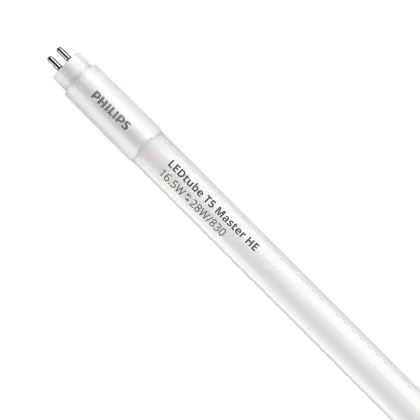 Ce tube LED Philips Tube LED T5 MASTER (Direct 230V) High Efficiency 16.5W 2300lm - 830 Blanc Chaud | 115cm - Équivalent 28W est l’un des produits les plus éconergétiques en remplacement des tubes T5 classiques. Ce tube LED est produit par Philips, vous êtes donc assuré de sa qualité. Avec une puissance de seulement 16.5 W, ce tube LED Philips a la même intensité lumineuse qu’un tube classique qui consomme 28 W.